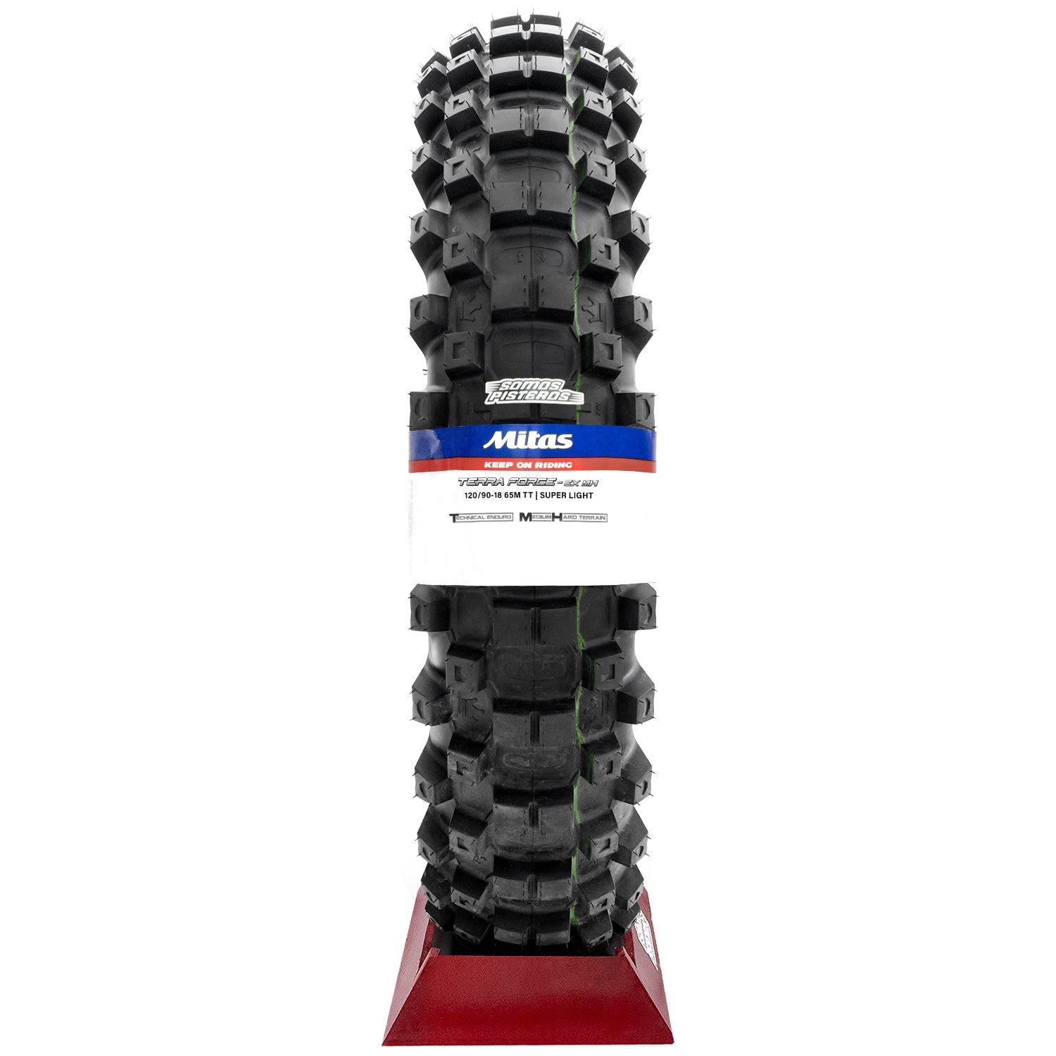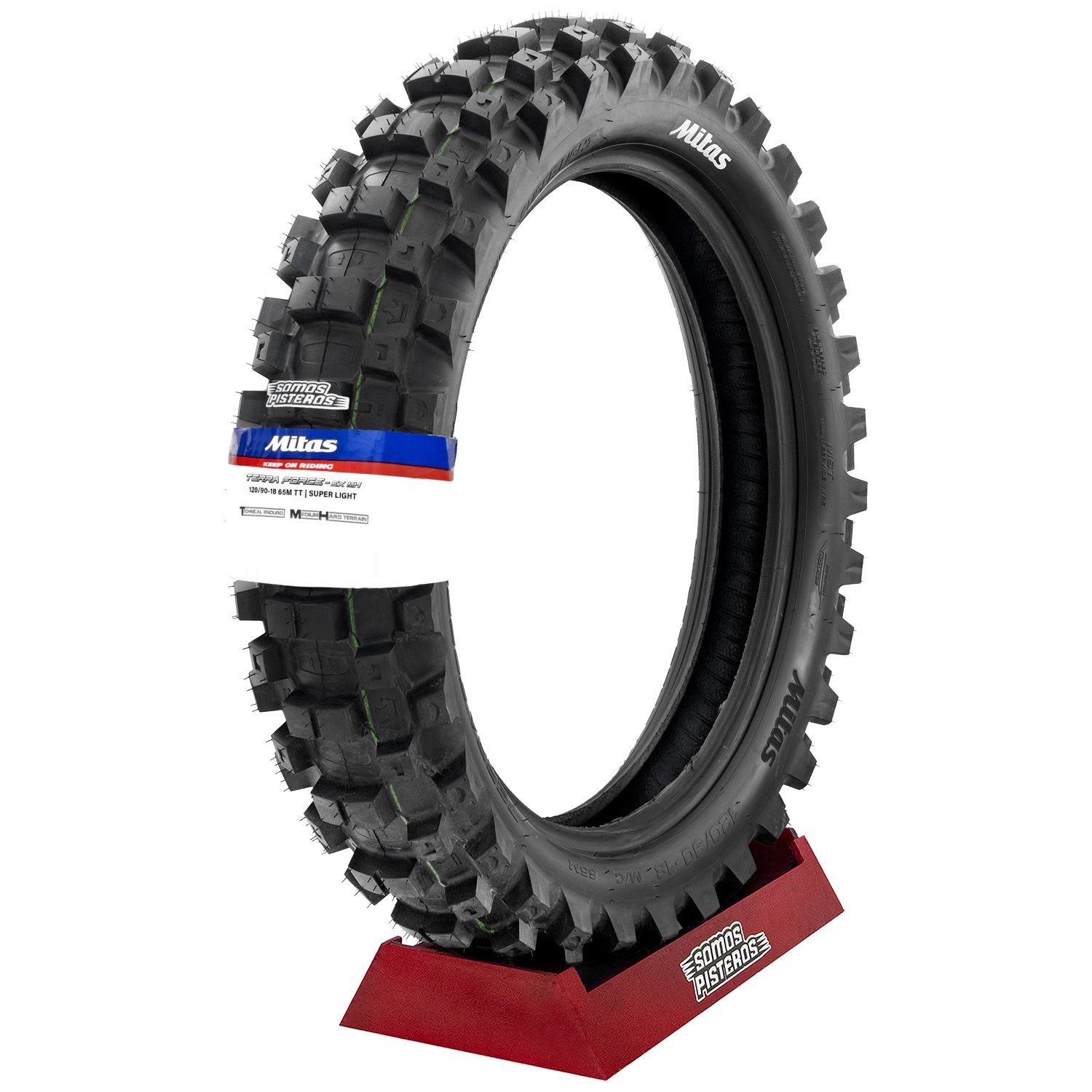 Tracción y control en suelo medio/duro gracias al patrón de tacos agresivo (full knob).